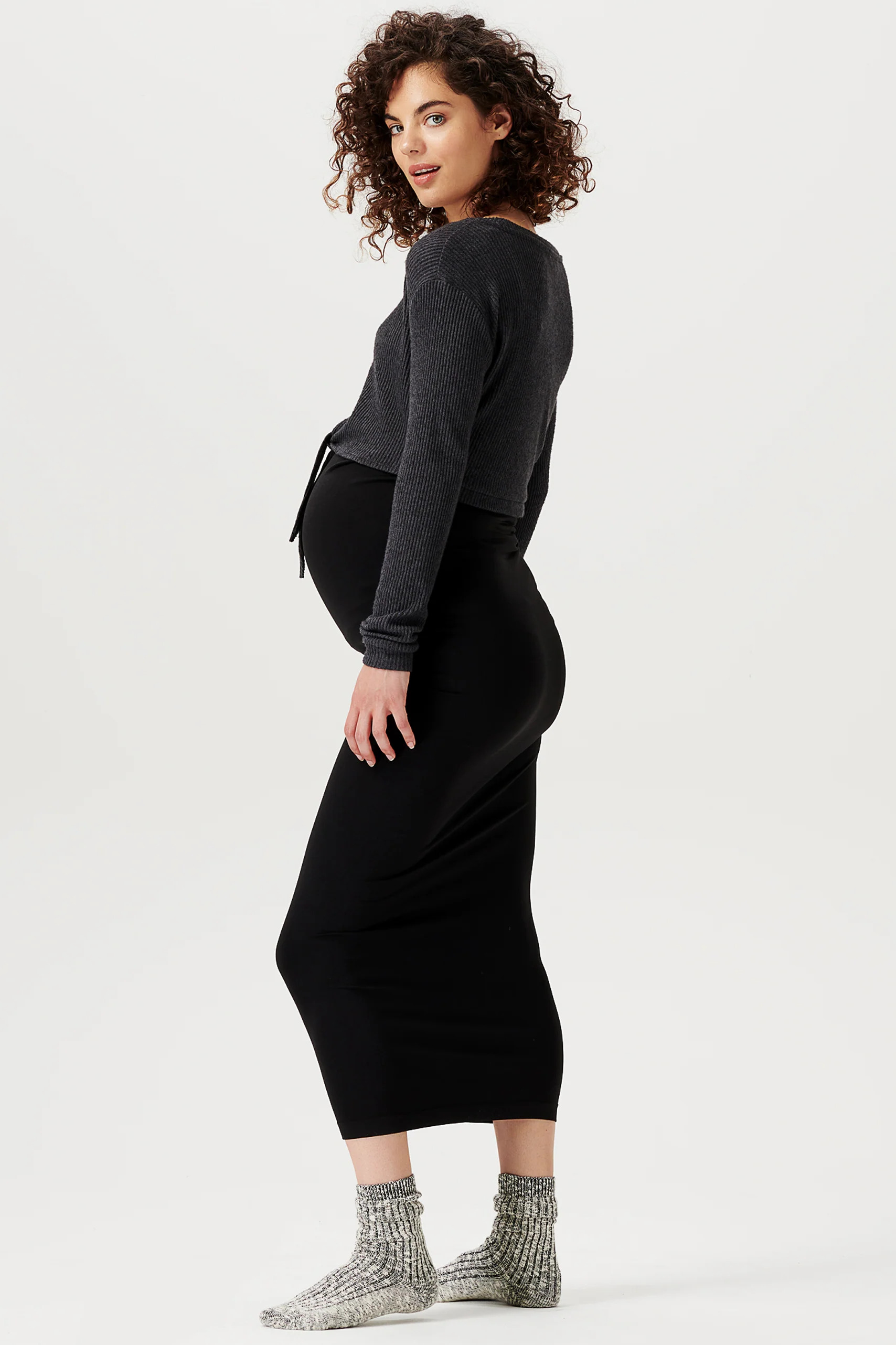 Maxi Umstandsrock aus weichem und dehnbarem Material. Der enganliegenede Schnitt legt einen besonderen Fokus auf deinen Babybauch, der jederzeit ausreichend Spielraum zum Wachsen hat.