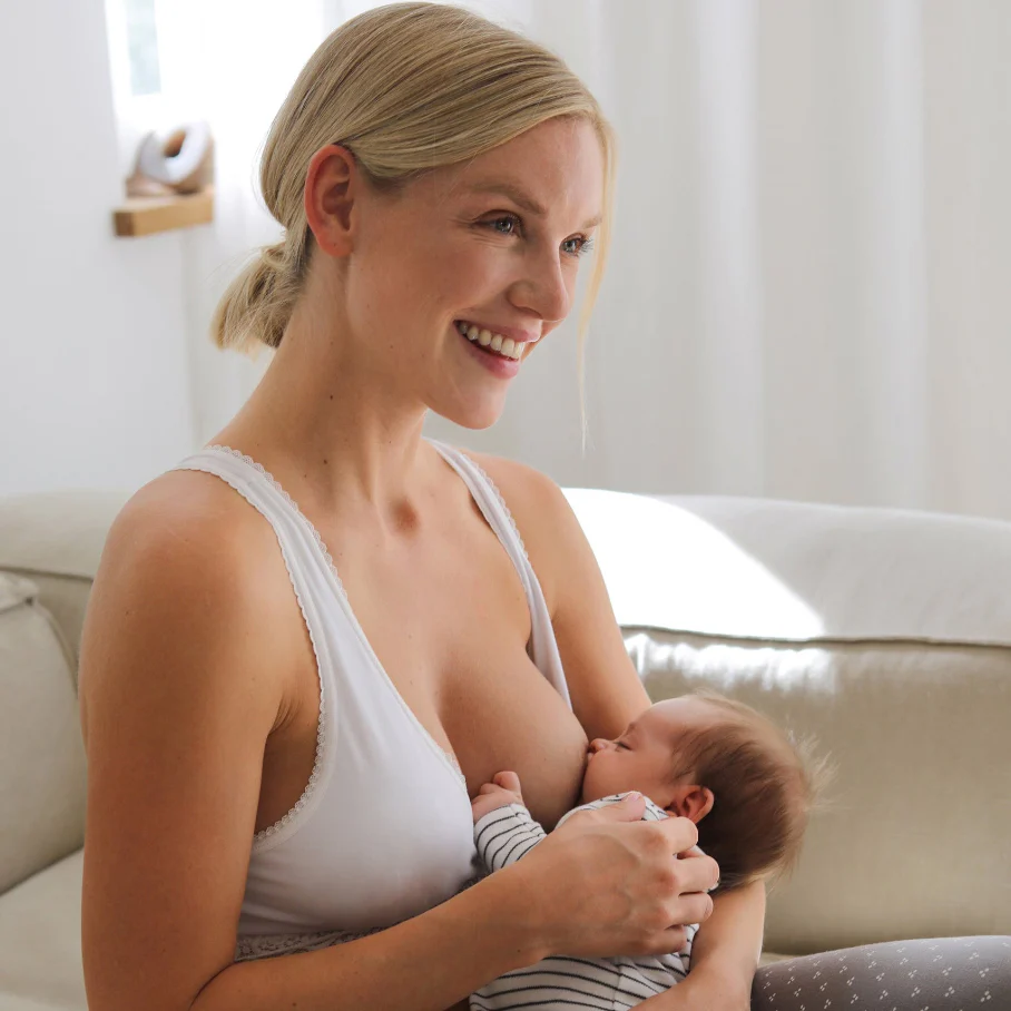 Bügelloser Schlaf Still BH mit hübscher, weicher Spitze im praktischen 2er Set aus weichem, elastischen Materialmix aus Baumwolle und Modal. Das breite Unterbrustband aus weicher, elastischer Spitze und die feine Spitzenborte an den Trägern verleihen dem Still BH einen romantischen Look und machen das Bustier zu einem zugleich super bequemen und hübschen Wäsche-Stück. Der praktische Schnitt und das elastische Material passen sich schon während der Schwangerschaft, deiner sich verändernden Brust an und schenken ihr sanften Halt. Da der BH keine störenden Verschlüsse am Rücken hat, kannst du den BH besonders gut auch nachts während der Stillzeit tragen. Der vorteilhafte Cache Coeur-Ausschnitt sorgt dabei für eine schöne Brustform und bietet dir einen schnellen und einfachen Stillzugang. Für ein unkompliziertes Anlegen deines Babys schiebst du die Lagen des Cache-Coeur Ausschnitts beiseite. So kannst du auch nachts im Liegen dein Baby ganz schnell und einfach stillen.
