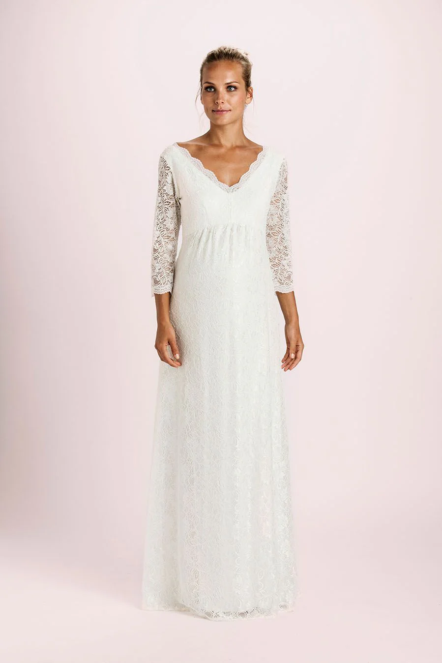 Umstandsbrautkleid mit Spitzenärmeln lang