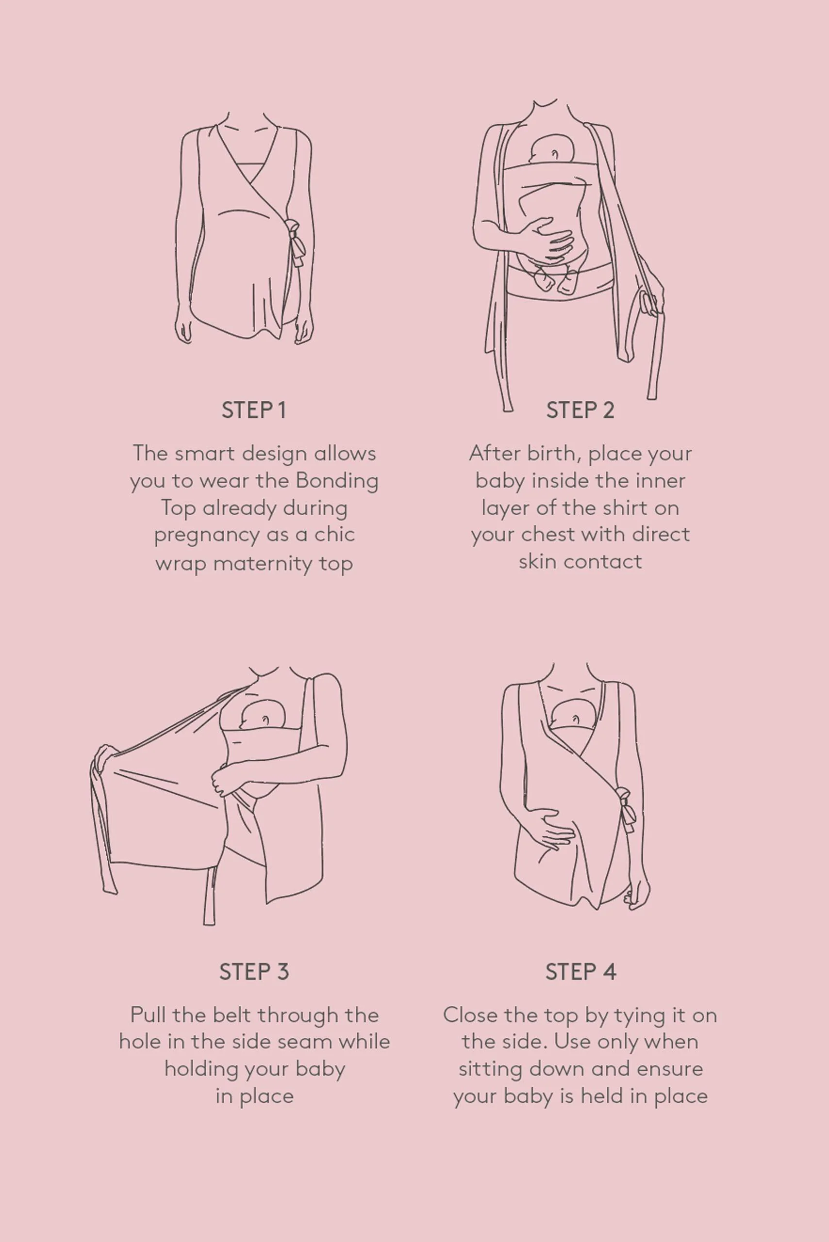 Bitte beachte: es handelt sich bei diesem Shirt um keine Babytrage! Es wurde speziell für den Hautkontakt mit deinem neugeborenen Baby im Sitzen designt.