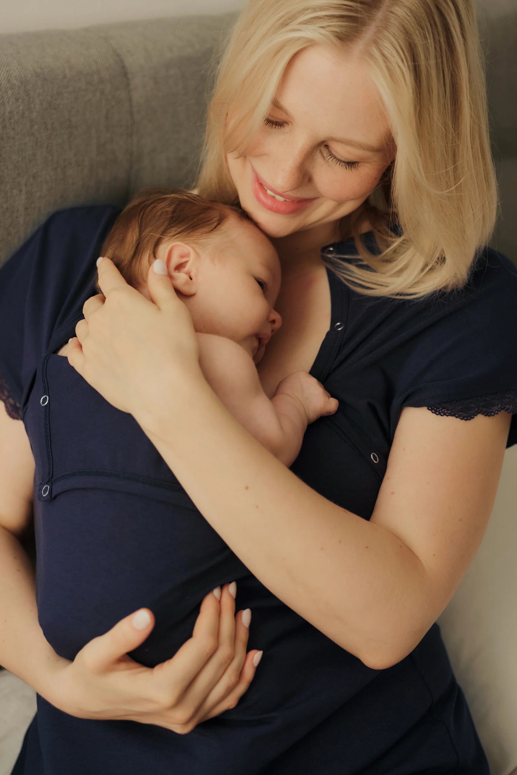 Organic Geburtskleid und Stillnachthemd navy