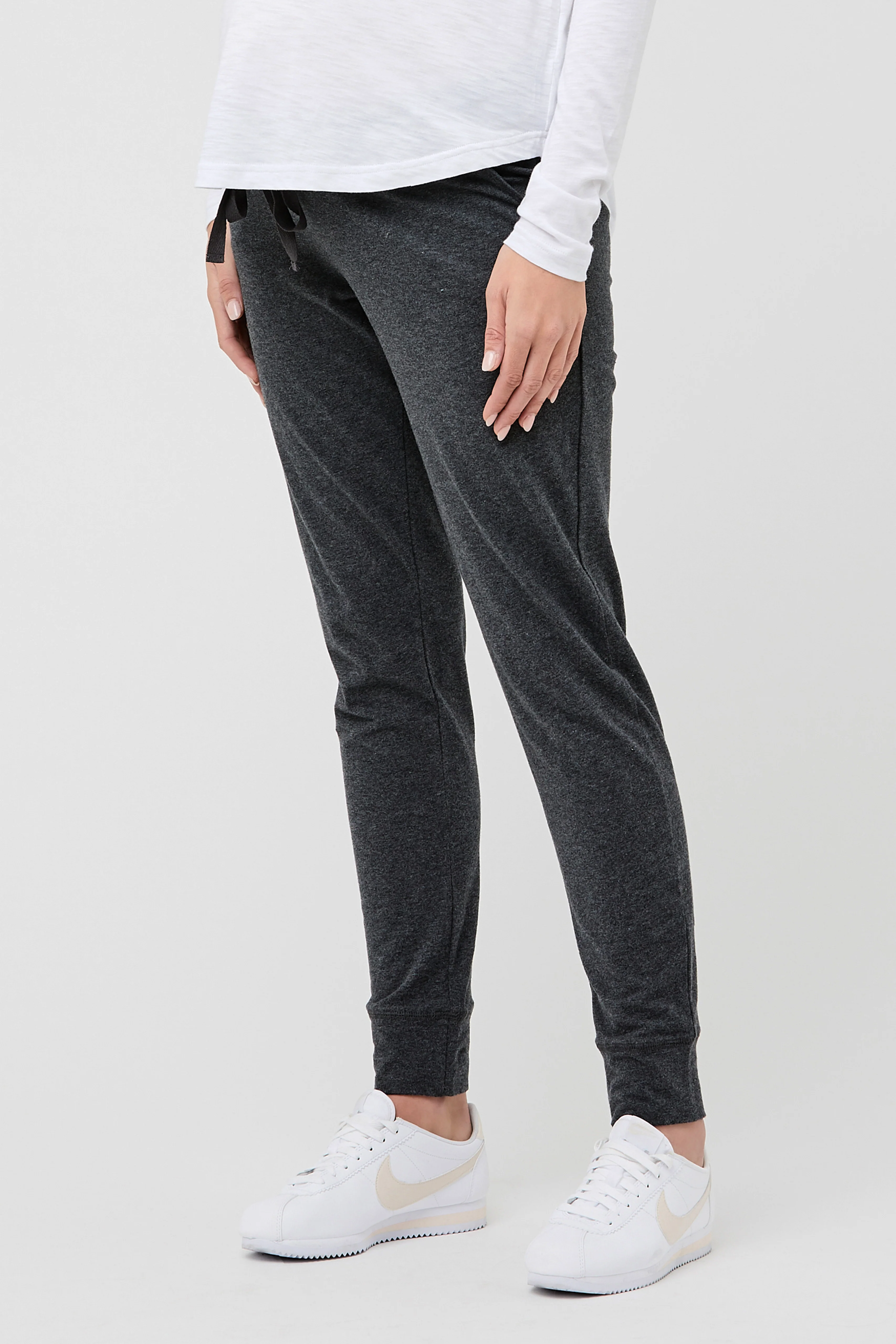 Organic Umstands-Jogginghose für Schwangere aus super gemütlichem Stretch-Jersey mit hohem Bio-Baumwoll-Anteil. Mit engem Bein und elastischem Unterbauchbund mit Tunnelzug - die perfekte Relaxhose für gemütliche Stunden zuhause.