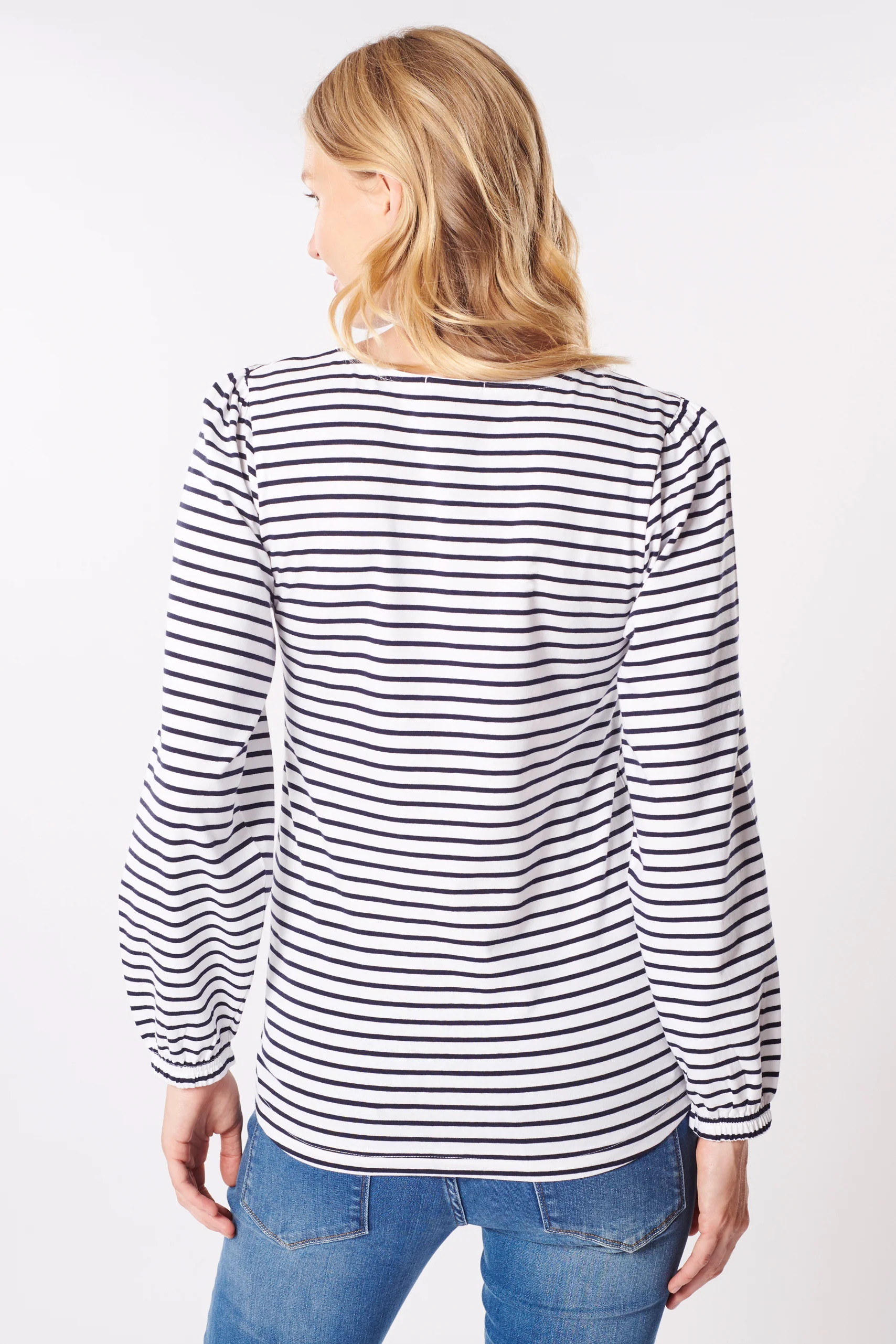 -70%Organic Umstandsshirt mit Puffärmeln gestreift—