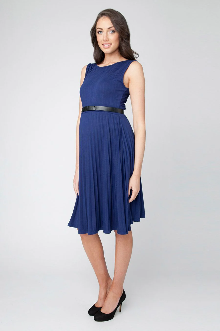 Ärmelloses Umstandskleid mit leicht ausgestelltem Plisseerock und betonter Empire Line. Der abgebildete Gürtel ist nicht im Lieferumfang enthalten.
