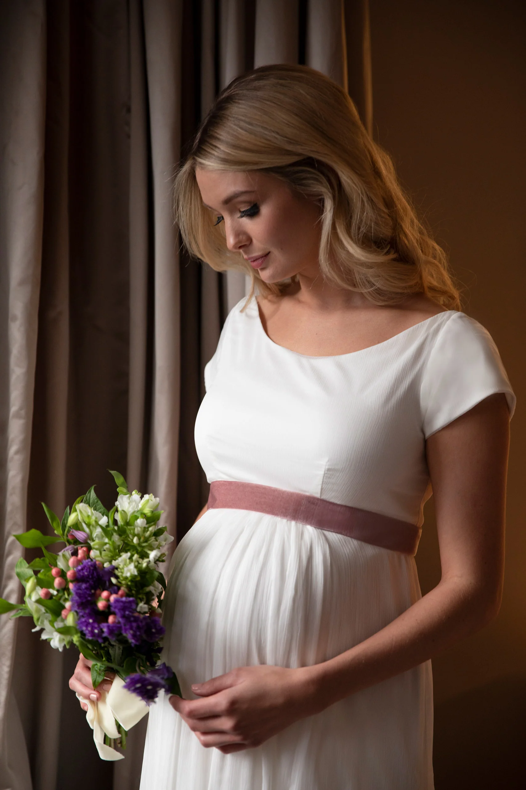 Schärpe aus weichem Samt zur Betonung der Empire Linie. Die ideale Ergänzung zu unseren festlichen Umstandskleidern und Brautumstandskleidern. Maße: ca. 180cm x 3.6cm.