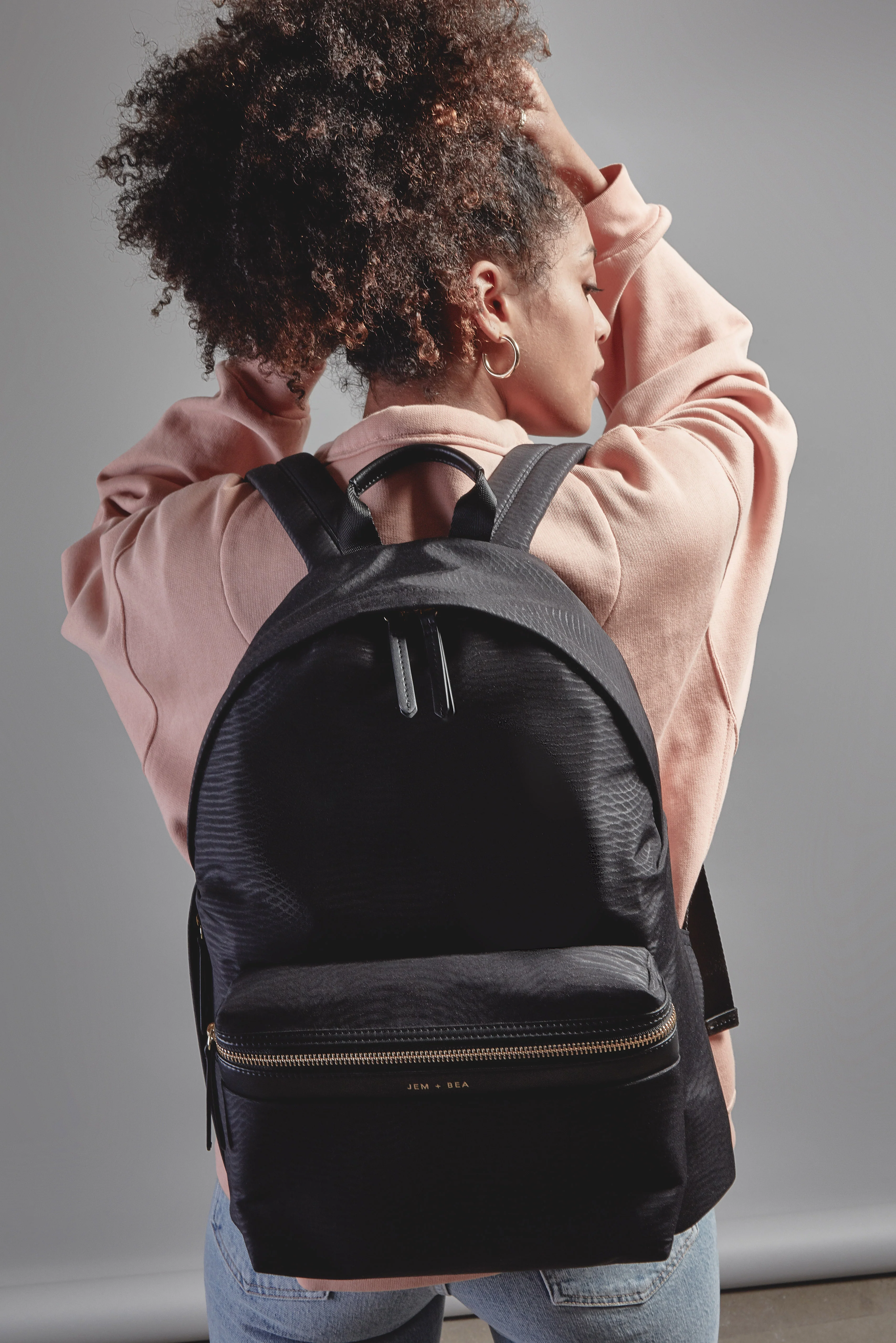Wickelrucksack aus robustem Nylon mit cooler Prägung in Python-Optik. Der Rucksack beinhaltet insgesamt 4 praktische Innenfächer, davon eines mit Reißverschluss, sowie ein verstecktes wärmeisolierendes Fach an der Seite. Die verstellbaren Schulterriemen und der verstärkte Rücken sorgen für einen bequemen Sitz. Im Lieferumfang sind eine passende Clutch und eine Wickelauflage enthalten. Der Rucksack kann dank praktischer Verschlüsse easy am Kinderwagen angebracht werden.